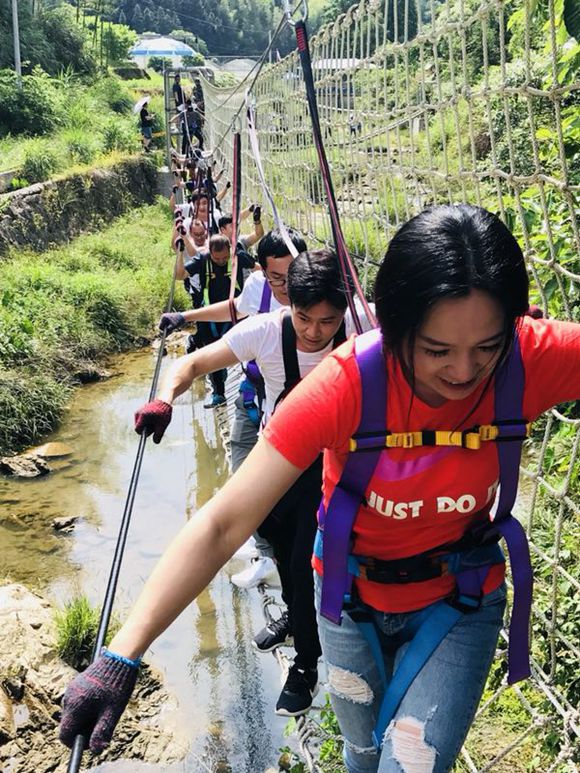 利山峽谷穿越戶外拓展項(xiàng)目線路全長1000米,離水面平均高度2米,沿溪逆流而上。全程共設(shè)16個(gè)關(guān)卡,許多關(guān)卡頗具挑戰(zhàn)性,特別考驗(yàn)參與者的毅力、耐心和團(tuán)隊(duì)協(xié)作精神。項(xiàng)目體驗(yàn)過程中,  名隊(duì)員齊心協(xié)力,即使遇到舉步維艱的關(guān)卡,隊(duì)員們也不拋棄、不放棄,相互鼓勵(lì),努力挑戰(zhàn)、超越自己。在精力和體力即將消耗殆盡之際,隊(duì)員們終于迎來勝利的曙光,終點(diǎn)處五顏六色的輪胎就像一只只甜甜圈,讓通關(guān)的勇者們品嘗了“苦盡甘來”的勝利滋味。