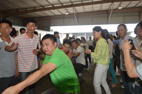 比賽在客運西站與南明物流的對決中首先開始。隨著裁判的一聲哨響,霎時間,加油聲和歡笑聲便響徹了整個修理車間。隊伍間實力相差懸殊的,裁判員比賽哨聲剛落,比賽就已經(jīng)結束了,引來了一陣陣歡笑聲;實力在伯仲之間的,那可就精彩了,加油鼓勁的喊破了嗓子,大力士們也是漲紅了臉,累得渾身冒汗。