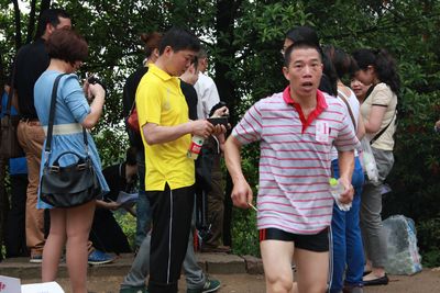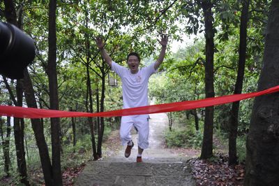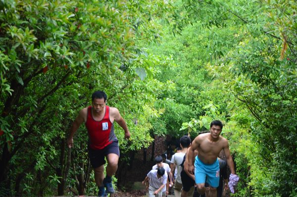 因拔河比賽冠軍要在運(yùn)動(dòng)會(huì)正式比賽期間產(chǎn)生,因此登山比賽也成為了集團(tuán)公司第五屆職工運(yùn)動(dòng)會(huì)產(chǎn)生首個(gè)冠軍的比賽項(xiàng)目。隨著裁判員的一聲令下,54名運(yùn)動(dòng)員爭(zhēng)搶著向著終點(diǎn)跑去。14分38秒后,快客分公司曾國(guó)偉第一個(gè)跑著經(jīng)過終點(diǎn);客運(yùn)東站樂進(jìn)15分16秒后第二個(gè)經(jīng)過終點(diǎn),客長(zhǎng)運(yùn)分公司鄭雅明以16分07秒居第三。