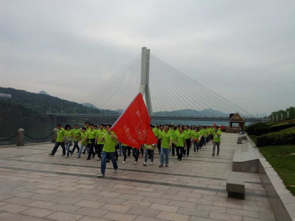 活動的起點設在防洪堤應星樓處,終點在防洪堤古城島附近。大家高舉旗幟,喊著口號,精神飽滿,隊列整齊,這次活動不僅鍛煉了我們的身體,增強了我們的體質,培養(yǎng)了我們的意志,還進一步促進了我們員工和員工之間,單位與單位之間的進一步交流,增進對對方的了解,大家都覺得這是一次非常有意義的活動。