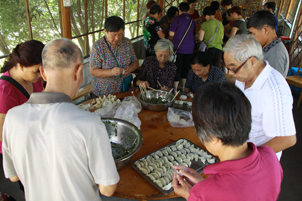 此次活動共有120多名體協(xié)會員參加,大家都想借此機會和大自然來個親密接觸,體協(xié)委員利用休息時間為大家采購了豐富美味的食物。利用新世紀(jì)綠草地依山伴水的地理資源優(yōu)勢,在秋日和煦的陽光下,在風(fēng)景秀麗的南明湖邊,我們老年人在綠草地上展現(xiàn)了 “年輕人”舞步,跳著佳木斯健身操動作,擺動雙臂,邁開雙腳,走出健康,走出幸福。當(dāng)走進(jìn)餐廳看見桌子上擺好的餃子皮和餃子餡,老同志們便紛紛摩拳擦掌,躍躍欲試。他們各自分工后便熱火朝天的忙起來,現(xiàn)場笑聲不斷。