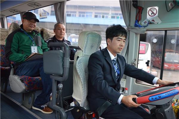 技能比武分安全駕駛常識比試和駕駛操作技能比武兩部分。安全駕駛常識比試以電腦當(dāng)場作答方式進行,比試題目從理論考試題庫中隨機抽取。駕駛操作技能比武模擬迎接旅客上車、發(fā)車前安全承諾、途中安全駕駛和車輛回場送客等幾個環(huán)節(jié)進行。比武邀請市交警支隊警官、市運管局運安科領(lǐng)導(dǎo)及麗汽集團汽校管理人員擔(dān)任裁判。