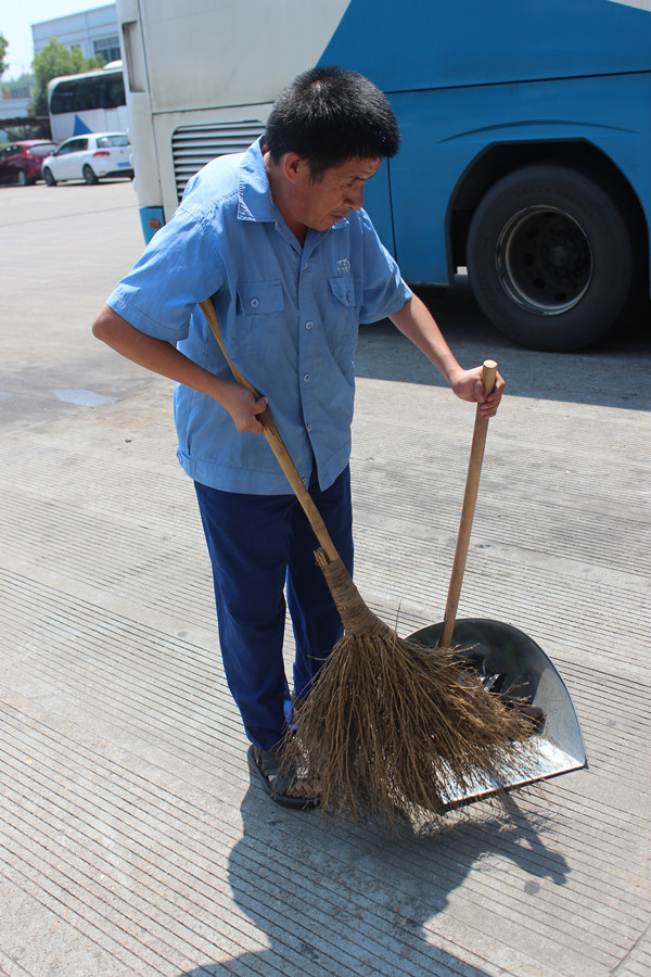 “中午時間這么熱,受得了嗎?” 他笑笑回答道:“熱是熱,既然來上班,工作總是要認真的做好?!?站場發(fā)車區(qū)以及通道衛(wèi)生都是宓建文今天當班的清掃范圍,他頂著烈日掃上一圈至少要半個小時,每次掃完在下客區(qū)稍坐片刻,喝上一口水,又提著簸箕和掃把開始新一輪的清掃。他說:“要是時間間隔再長些,垃圾就會多,特別是發(fā)車區(qū)前是旅客檢票上車的必經(jīng)之路,不清掃勤些,有損車站整潔衛(wèi)生的形象。”