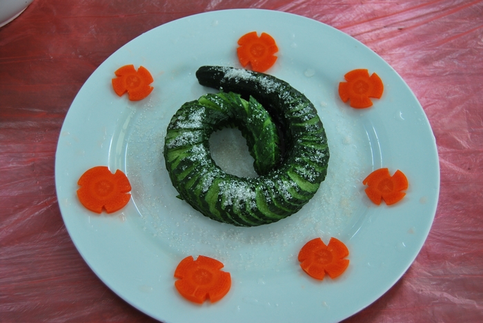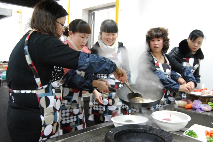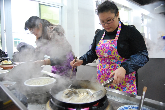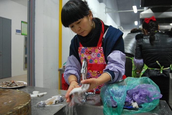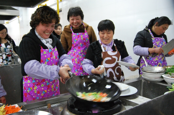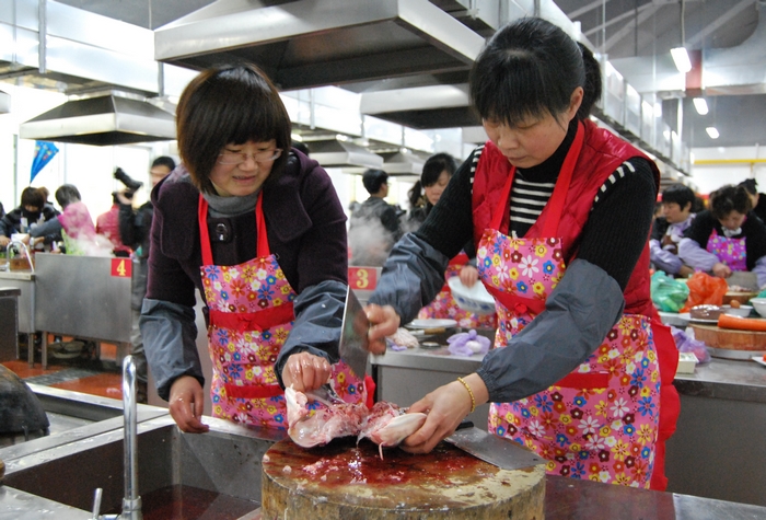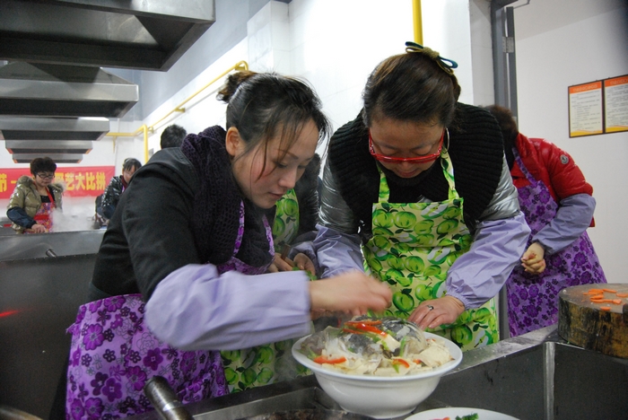 今年的女工廚藝大比拼一共吸引了集團(tuán)公司各單位和離退委的12支隊伍參加,5人一組,5個女工在組里各司其職,分為洗菜、切菜、烹飪、輔助等崗位。按照規(guī)定,每組必須根據(jù)組委會提供的原材料,在規(guī)定的時間內(nèi),制作出14道菜。