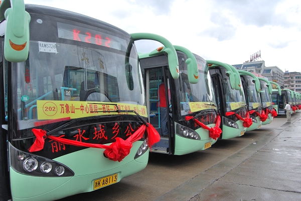 萬(wàn)象山至碧湖線路起止站分別為萬(wàn)象山、碧湖,途經(jīng)市中心醫(yī)院、三巖寺、汽車西站、九里村、高速路口等26個(gè)站點(diǎn),總里程約21公里;火車站至大港頭路線起止站分別為火車站、大港頭,途經(jīng)汽車東站、九里村、泰隆銀行、星火商城、三巖寺等40個(gè)站點(diǎn),總里程約38公里。這兩條線路共投入14輛空調(diào)大巴車,分別每隔12分種、25分鐘發(fā)車,全程票價(jià)均為3元,公交運(yùn)營(yíng)時(shí)間夏季為5∶30-18:30,冬季為6:30-17:30。 兩條線路的開通將進(jìn)一步滿足人民群眾的出行需求,加快城鄉(xiāng)道路運(yùn)輸結(jié)構(gòu)的調(diào)整,有效整合和充分利用城鄉(xiāng)客運(yùn)資源,加快農(nóng)村城鎮(zhèn)化進(jìn)程,提高城鄉(xiāng)客運(yùn)的整體發(fā)展,促進(jìn)城鄉(xiāng)經(jīng)濟(jì)全面協(xié)調(diào)發(fā)展。