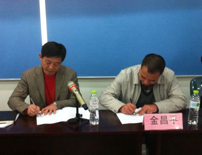 集團公司常務副總何赤詮與金副處長簽訂安全生產(chǎn)責任書
