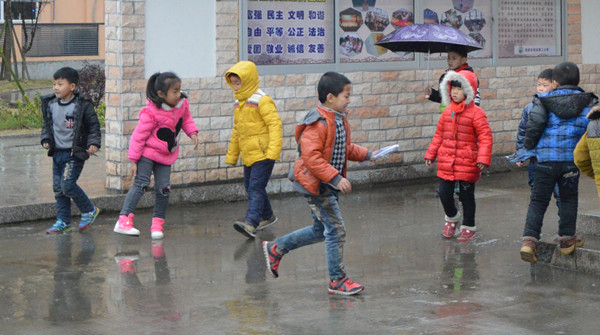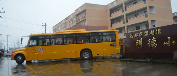 校車開(kāi)出碧湖二小(明德小學(xué))