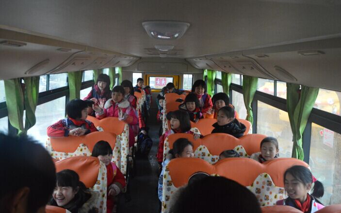 儀式結(jié)束后,部分學(xué)生坐上新校車,進(jìn)行了一次體驗(yàn)之旅。學(xué)生雷晨波說(shuō):“我以前上學(xué)都是坐電瓶車的,遇到下雨天衣服都會(huì)淋濕,還很冷,現(xiàn)在可以坐新校車了,以后,衣服不會(huì)被淋濕了,也不會(huì)冷了。”
