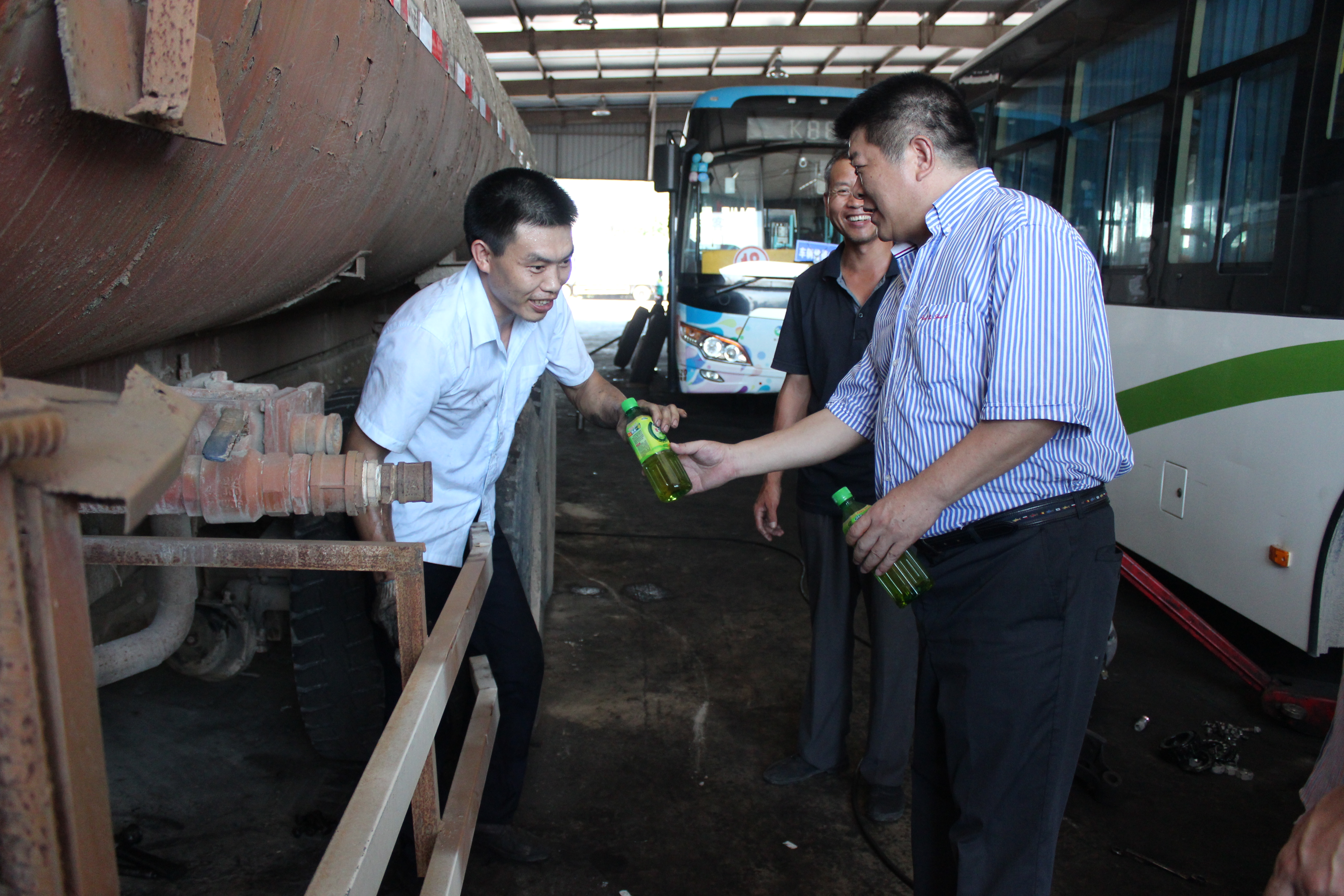 7月3日上午,集團(tuán)公司領(lǐng)導(dǎo)率3個送涼小組,帶著冰紅茶、冰綠茶等清涼飲品,到各基層單位慰問一線員工。