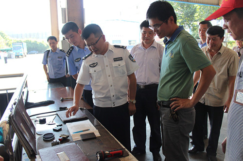 為貫徹落實公安部交管局《關(guān)于組織開展道路交通安全大檢查交叉檢查的通知》精神,推動全面開展道路交通安全大檢查活動,督促各地落實“零容忍、全覆蓋、嚴執(zhí)法、重實效”要求和有關(guān)重點工作措施,7月23日下午,公安部道路交通安全大檢查異地交叉檢查組蒞臨麗水市運輸集團有限公司檢查指導(dǎo)安全生產(chǎn)工作。市公安局副局長、交通警察支隊支隊長陳志斌,集團公司總經(jīng)理薛和有陪同檢查。