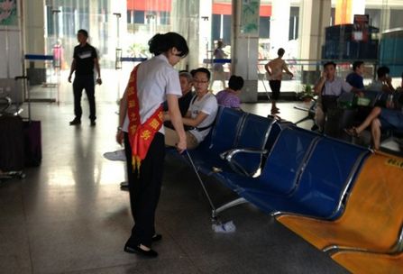 創(chuàng)衛(wèi)工作是當(dāng)前西站各項(xiàng)工作中的重中之重,客運(yùn)西站實(shí)行全站員工總動(dòng)員,要求每位員工做到視線內(nèi)我就是保潔員,在確保完成本職工作的同時(shí),全力以赴打好這場創(chuàng)衛(wèi)攻堅(jiān)戰(zhàn),實(shí)行“客運(yùn)工作與創(chuàng)衛(wèi)工作兩手抓,兩手都要硬?!?br/> 踏進(jìn)站前廣場,你會看見保潔員拿著掃把、簸箕不停的巡視,及時(shí)的清理;買票時(shí),你會時(shí)不時(shí)看見保衛(wèi)稽查人員拿著長柄鑷子在清理;候車時(shí),推著服務(wù)車的西站服務(wù)班工作人員在為旅客提供服務(wù)的同時(shí)也拿著長柄鑷子清理地上的垃圾;上車時(shí),你還會在發(fā)車區(qū)看見檢票員跟調(diào)度員在發(fā)車間隙拿著長柄鑷子及時(shí)清理正在上車的旅客丟下的垃圾。不遠(yuǎn)處的場地上,是拿著鑷子和垃圾袋的值班站長的身影。