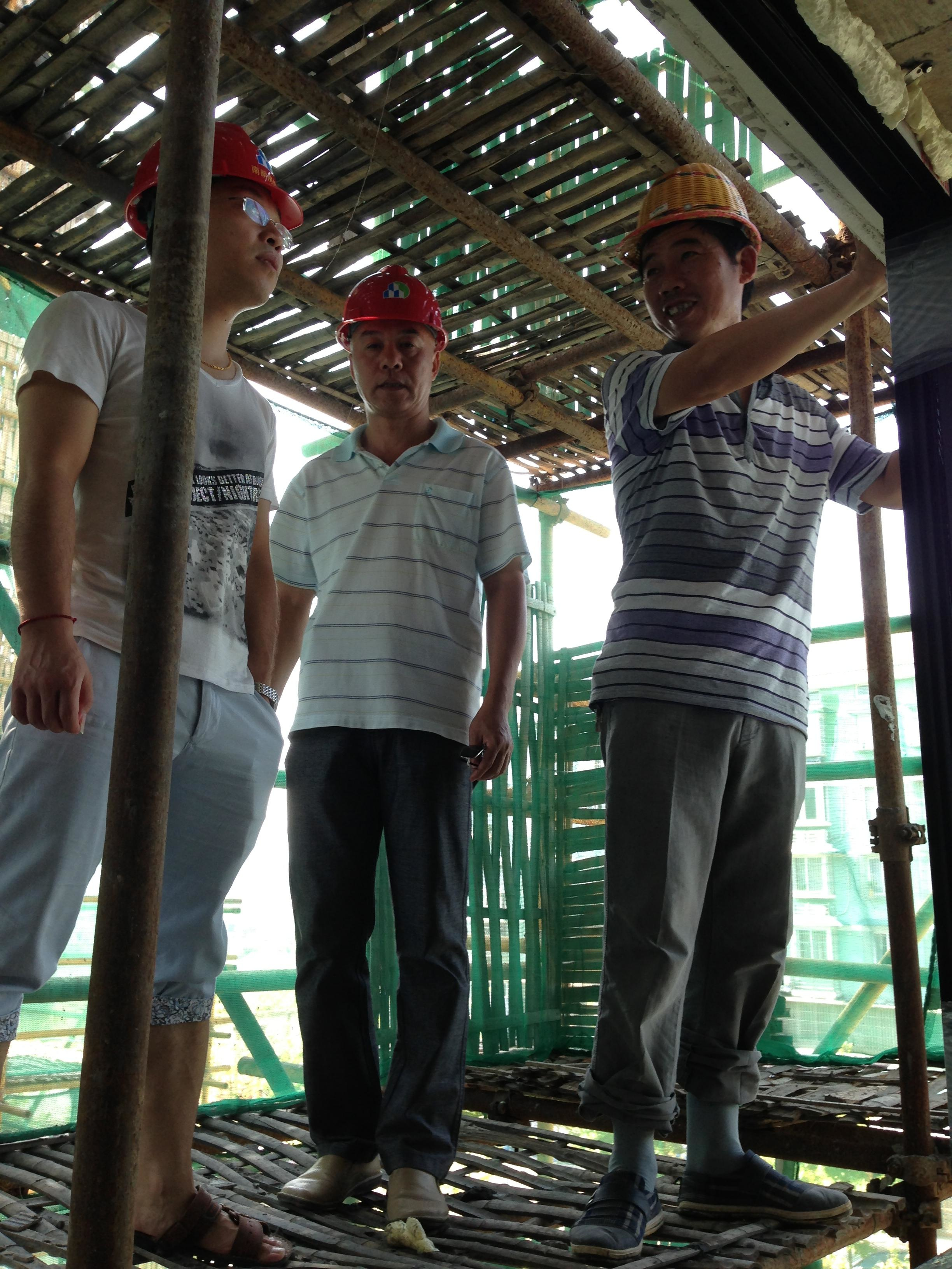 走進施工現場,大家沒有被高溫所嚇到,堅守在自己的崗位上,兢兢業(yè)業(yè)地完成著各項任務。看!工程部員工正深入工地現場了解情況:檢查鋁合金門窗安裝是否符合要求;對防火門材料進行記錄,對比質量是否達標;對施工所需的鋼筋、水泥等材料的檢驗以及重要部位和關健節(jié)點的施工,進行監(jiān)督管理。站在太陽底下,這痛苦的“桑拿天”讓員工們的衣服被汗水浸濕,嘴巴里就像有團火,手剛抹掉額頭的汗,馬上就會流出來,褲子上逐漸出現了“云彩”,原來那是汗?jié)n。為了工程項目能早日竣工交付使用,大家都沒有一句怨言,正以百分之二百的熱情投入這場“高溫持久仗”中。