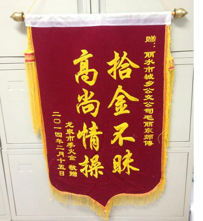 這個包可好點“金貴”,包里裝著萬元現(xiàn)金和其他各種證件,這一萬多塊錢是生小孩剩下的錢還有親戚朋友們坐月子送來的賀禮和給孩子的壓歲錢。原來,章女士是雅溪人,夫家在龍泉。由于新生兒黃疸偏高,要經(jīng)常復(fù)查,為了圖個方便,章女士就在娘家坐月子。出了月子,孩子的黃疸也正常了,章女士準備去婦保院做完最后一次復(fù)檢就回龍泉了。卻不曾想由于自己的粗心把包落在了公交車上。章女士說:“包里不僅放著一萬多塊錢,還有戶口本、身份證、小孩的出生證明等證件,由于戶口本、醫(yī)學證明這些很難補辦,真把我急壞了。車上乘客那么多,肯定找不回來了,心里瞬間涼透了?!?br/> 僅僅過了20多分鐘,章女士接到了城鄉(xiāng)公交公司的電話,核對完章女士的信息后,公司告知她可以取回她的包了。原來,剛走上崗位兩個月的公交車司機毛禮東師傅在發(fā)現(xiàn)章女士丟失的包后,第一時間與公司,通過包里章女士大女兒的家校聯(lián)系卡,找到了章女士的手機號碼。聽到這個消息,章女士頓時松了一口氣。