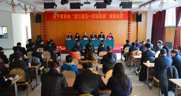 12月24日,授予章雙林“浙江省五一勞動獎章”表彰大會在麗水舉行,麗水市總工會黨組書記、常務副主席陳子民、副主席葉云妹、柳愛麗、麗汽集團董事長、黨委書記葉茂和章雙林本人出席大會。