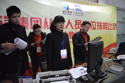 “您好!請(qǐng)問(wèn)您去哪里,什么時(shí)候去,買幾張?”“青田???,票價(jià)12元?!薄巴砩?3:05分到青田海口一張,收您20元,找您8元,請(qǐng)您核對(duì)?!?br/> 12月3日晚7:00,集團(tuán)公司從業(yè)人員崗位技能比武--站售操作比賽準(zhǔn)時(shí)在集散中心接待大廳開(kāi)始。此項(xiàng)操作比賽以麗水至青田、麗水至松陽(yáng)兩條線路的沿途站點(diǎn)為假想站點(diǎn),通過(guò)四位旅客循環(huán)不間斷地車票購(gòu)買,來(lái)測(cè)試參賽選手售票的標(biāo)準(zhǔn)性、服務(wù)的規(guī)范性及售票速度和差錯(cuò)率等。比賽要求每位參賽選手要完成20張車票的售票和報(bào)表的填寫工作。東、西兩站各有6名選手參加了此項(xiàng)比賽。