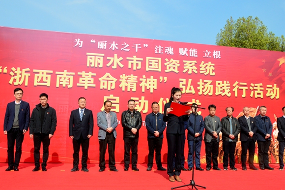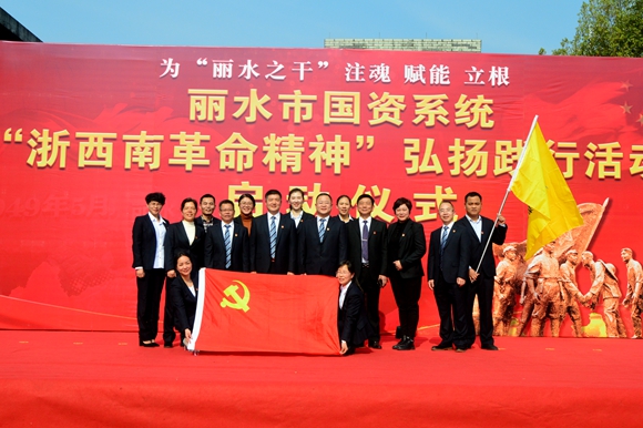在浙西南革命根據(jù)地紀(jì)念館前,所有與會(huì)人員面對(duì)黨旗,由市國(guó)資委黨委委員、副主任高天河帶領(lǐng)大家重溫入黨誓詞。革命戰(zhàn)爭(zhēng)年代,周恩來(lái)、劉英、粟裕等老一輩革命先驅(qū)為了民族的獨(dú)立和人民的幸福,將鮮紅的熱血拋灑在浙西南大地上,締造了偉大的“浙西南革命精神”。啟動(dòng)儀式上,集團(tuán)公司雷冰帆作為職工代表在大會(huì)發(fā)言,她講到,作為職工代表要在弘揚(yáng)“浙西南革命精神”的征程上,在創(chuàng)建浙江( 麗水)綠色綜合發(fā)展改革創(chuàng)新區(qū)、打造詩(shī)畫(huà)浙江大花園最美核心區(qū)主戰(zhàn)場(chǎng)中當(dāng)先鋒、作表率。