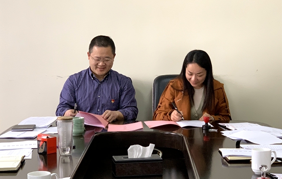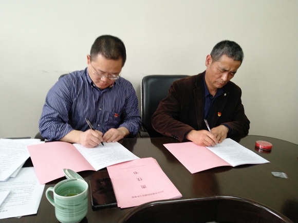 圖為集團(tuán)公司黨委與黨辦及各黨支部簽訂《黨的建設(shè)工作考核責(zé)任書》