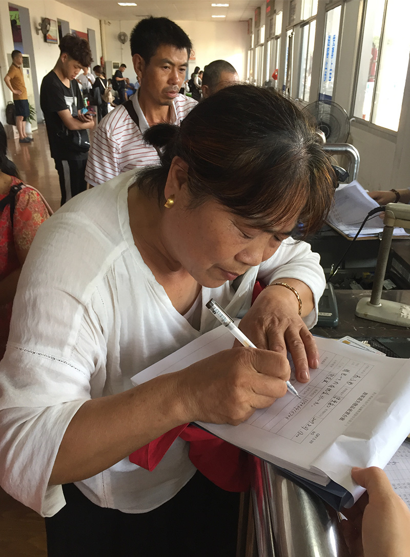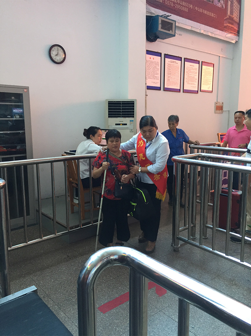 護(hù)送年老的盲人旅客上車(chē)