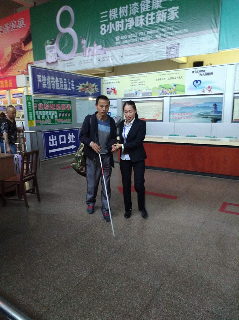 為盲人提行李護(hù)送她上車(chē)